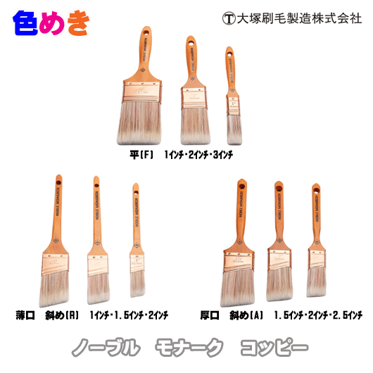 大塚刷毛 ノーブル モナーク コッピー 【平 1インチ・2インチ・3インチ】【薄口 斜 1インチ・1.5インチ・2インチ】【厚口 斜 1.5インチ・2インチ・2.5インチ】コッピー 刷毛 PBT PET 混合繊維 強いコシ 高粘度塗料 外装 ラスター オシャレ 高級感