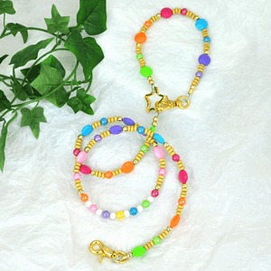 ビーズリード&ネックレスセット ハワイアンデザイン カジュアルかつおしゃれなハワイアンデザイン☆ お散歩での注目度アップ間違い無し♪ 愛犬とオシャレして出かけませんか? 持ち手も簡単に係留でき、扱いやすい仕様となっております。 また、繰り返し耐久テストを行い安全にも考えて作られた商品です! サイズは全3サイズ。 S・M・Lから愛犬に合ったサイズをお選び下さい。 その他、デザインも全5種類と豊富なバリエーションとなっております★ パッケージはひとつひとつ丁寧に梱包されており、高級感のある一品です。 愛犬や、ワン友の誕生日プレゼントにいかかがですか? 商品詳細 品名 BeadsLeash & Necklace SET (ビーズリード&ネックレスセット) ハワイアンデザイン 分類 リード ・ ネックレス(アクセサリー) 適応犬種 小型犬〜中型犬 サイズ S 首周り:20cm、リード長さ:約105cm M 首周り:24cm、リード長さ:約105cm L 首周り:28cm、リード長さ:約105cm 生産国 MADE IN TAIWAN 素材 プラスチック、アクリルビーズ、ステンレスワイヤー 注意事項<必ずお読みください> ※ モニターによって実際の商品とは色合いが異なって見える場合があります。 ※ 使用上問題の無い程度の多少の傷・汚れはご了承下さい。 ※ ご使用・お取り扱いには十分にご注意ください。また、飼い主様の目の届く範囲内でご使用ください。 ※ 強度につきましては十分に注意して製造しておりますが、極度に力の強いわんちゃん(大型犬等)、噛み癖・極度な引っ張り癖のあるわんちゃんへのご使用は向いておりませんのでご了承ください。 ※ ハーネス・リード・首輪等は消耗品です。自然と劣化・色あせしますのでご了承ください。 ※ 飼い主様が常にチェックし、少しでも破損・ゆるみ等がある場合はご使用を止め新しい商品とお取り換えください。 ※ ペット(犬・猫など)以外には使用しないでください。 ※ 万一、事故等が起きた場合、当店では責任を負いかねますのでご了承ください。 ※ 本商品はポスト投函便発送でのみ送料無料とさせて頂きます。 ※ 支払方法で代金引換を指定されている場合、配送方法で宅配便を指定されている場合は、通常送料をご負担頂きます。(決済画面では送料0円となっておりますが、後ほど修正(送料加算)させて頂きます。) ※ お届け先が北海道・沖縄・離島の場合は、ポスト投函便以外での発送には別途追加送料が必要となる場合がございます。