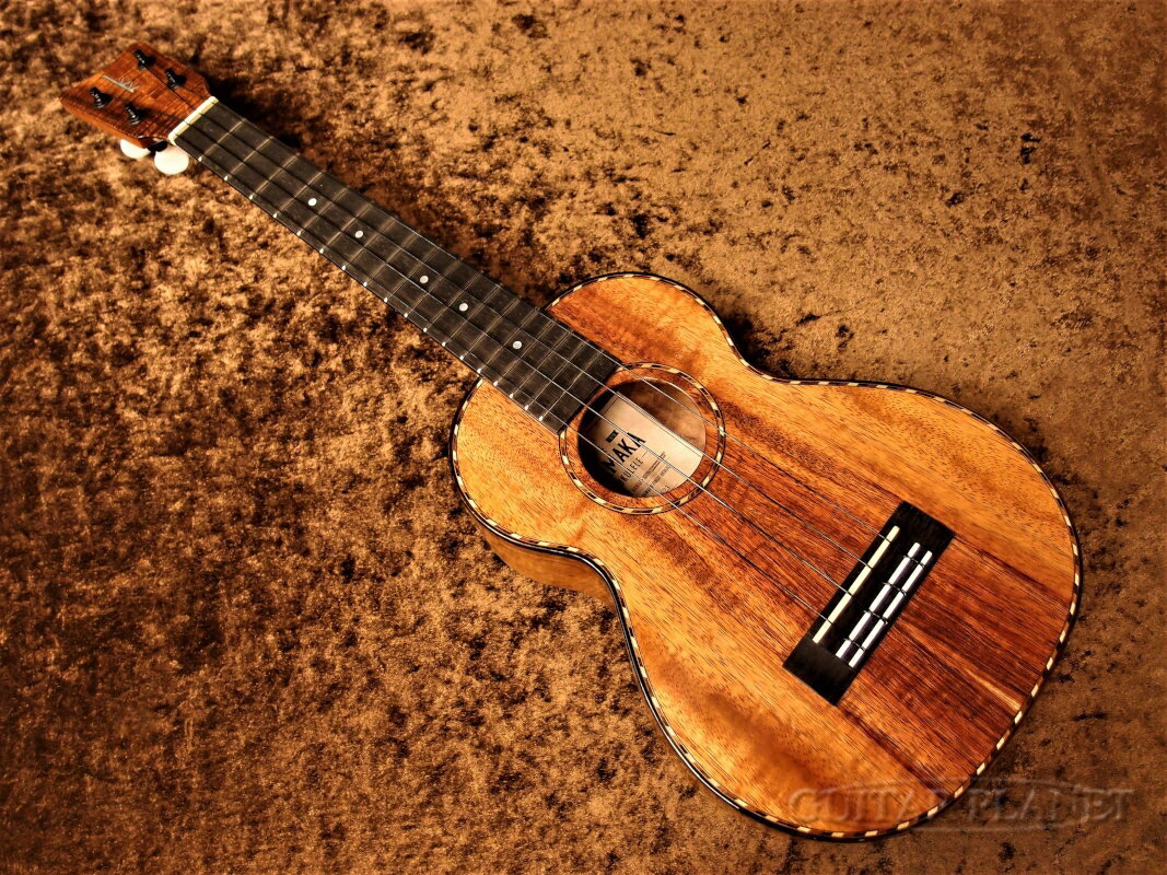 【ショッピングクレジット無金利】&【超低金利キャンペーン】48回払いまで金利手数料0%!! ------------------------------------------------------------------------- 【個体特徴】 ・極上の杢目美。「虎目」が織りなす唯一無二の外観 この個体の最大の魅力は、見る者を圧倒する美しい「虎目(トラ杢)」の出方。 トップだけでなく、バック、さらにはヘッドに至るまで全面にくっきりと現れたトラ杢は、 まさに自然が描いた芸術です。 角度や光の加減によって表情を変えるその杢目は、立体感と深みを生み、手に取った瞬間から特別な 存在感を放ちます。 ここまで均整のとれたトラ杢が全体に現れている個体は非常に稀少で、外観にこだわるプレイヤーや コレクターにも自信を持っておすすめできます。 ・音が「鳴る」。豊かで深みある響き 見た目の美しさだけでなく、音色にも確かな説得力があります。 担当の主観にはなりますが、個体としての鳴りが非常に良く、弾いた瞬間に 空気を震わせるようなレスポンスを感じられる一本です。 中音域にしっかりと芯がありつつも、抜けの良い高音とふくよかな低音がバランス良く共存。 アルペジオでは透明感のある響きを、ストロークでは太く厚みのあるサウンドを奏でてくれます。 【HF-3DI】(KAMAKA テナーサイズ・デラックスシリーズ) ウクレレ愛好家の誰もが憧れるブランド「KAMAKA」から、テナーサイズのデラックスモデル 「HF-3DI」が入荷しました! このモデルは、シンプルなクラシックシリーズ(HF-3)に比べて、使用されている材、装飾、 そして音色までもがグレードアップしています。 「上質な素材と美しい装飾」 ボディには、美しい木目が印象的な高級グレードのカーリーハワイアンコアを贅沢に使用。 ブリッジと指板には、硬くて耐久性に優れた高級材エボニーを採用しています。 さらに、ボディの縁やサウンドホール周りには、ロープ風の装飾とローズウッドのバインディング&ロゼッタが 施されており、見た目にも高級感と上品さを演出しています。 モデル名の「I」は、スロテッドヘッド仕様であることを示しており、クラシックギターでおなじみの このヘッド形状が、個性的でインパクトのある外観を与えています。 「洗練された音色」 音の面でも、クラシックシリーズと比べてさらに深みと上品さが加わっています。 ウクレレらしい軽やかな音に加え、心に響くような豊かさと奥行きを感じさせる音色は、 弾き語りにもソロ演奏にもぴったり。幅広いプレイスタイルに対応できる一本です。 「テナーサイズの魅力」 KAMAKAといえば、ウクレレ弾きなら誰もが知るハワイの名門ブランド。 中でもテナーサイズは、世界で最も多く作られ、親しまれているサイズです。 単音のピッキングでもしっかりとした音量と伸びがあり、繊細な音色を楽しむのに最適。 ウクレレは小さいと思っている方も、テナーサイズであれば、体へのフィット感も抜群です。 【Kamaka】 2016年で100周年を迎えたカマカウクレレ。伝統を継承しつつ、新たな時代へと歩みを進めています。 100年以上にも及ぶ歴史を誇り、ウクレレ文化を支えてきた『KAMAKA UKULELE』。 現存するウクレレメーカーとしては、他の追随を許さないダントツの老舗メーカーです! ”ウクレレの基本・基準”とも言われているその音色は、世界中の多くのプレイヤーに愛され続けています。 初心者の方でも比較的扱い易く、馴染みのある“ウクレレらしい音色”は、長きにわたって伝統を築いてきた、 カマカウクレレならではの音色と言っても過言では有りません。 カマカウクレレはハワイアン音楽の歴史とも言われるほど、その土地の文化と長年にわたって 深く関わってきました。 創業は1916年。1世紀にも及ぶ歴史を誇る『KAMAKA UKULELE』ファクトリーは、オアフ島のホノルル市街 にあります。 創始者のサミュエル・カマカの言葉に“もし楽器を作って、ファミリーの名前を付けるなら、ガラクタは作るな” という言葉の意味するように、その理念、想いは代々確実に受け継がれ、変わることなく現在に至っています。 創業当初から、最高品質の楽器を作るという彼らの強い意志で生み出されてきたウクレレの素晴らしさは、 世界中のプレイヤーからの信頼が物語っています。 100年以上にも及ぶ歴史を歩み、ハワイのウクレレ文化を育んできたカマカ。その集大成でもある技術と 想いで生み出された1本のウクレレです! 是非このご縁をあなたに!! 【仕様】 サイズ:テナー トップ:ハワイアンコア単板(デラックスグレード) サイド&バック:ハワイアンコア単板(デラックスグレード) ネック:マホガニー 指板&ブリッジ:エボニー ヘッド突板:ハワイアンコア(デラックスグレード) ナット&サドル:タスク ペグ:SCHALLER GrandTune(ギヤタイプ)※1:18ギヤ比 フレット:14Fジョイント/18F ポジションマーク/インレイ:MOP(マザーオブパール)/ドット(3,5,7,10,12,15) ヘッドロゴ:MOP(マザーオブパール) トップ・バインディング/パーフリング:ローズウッド/ロープパターン(ロ