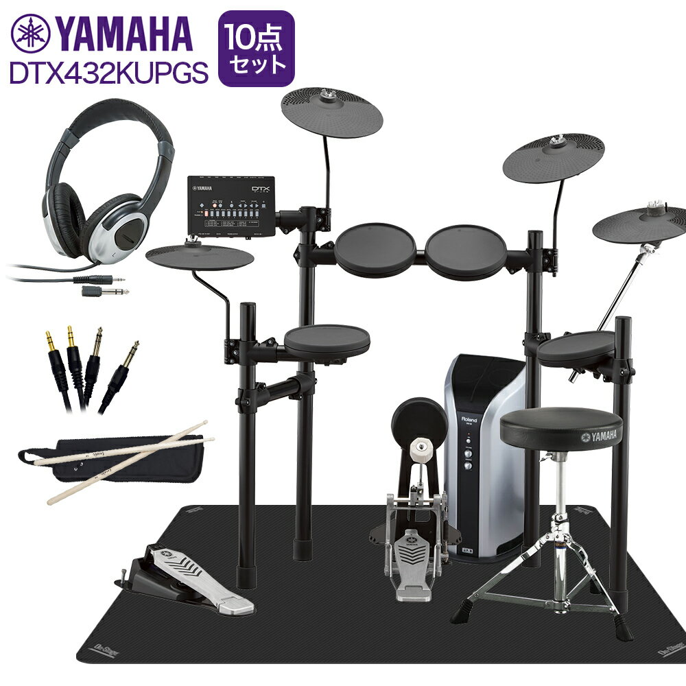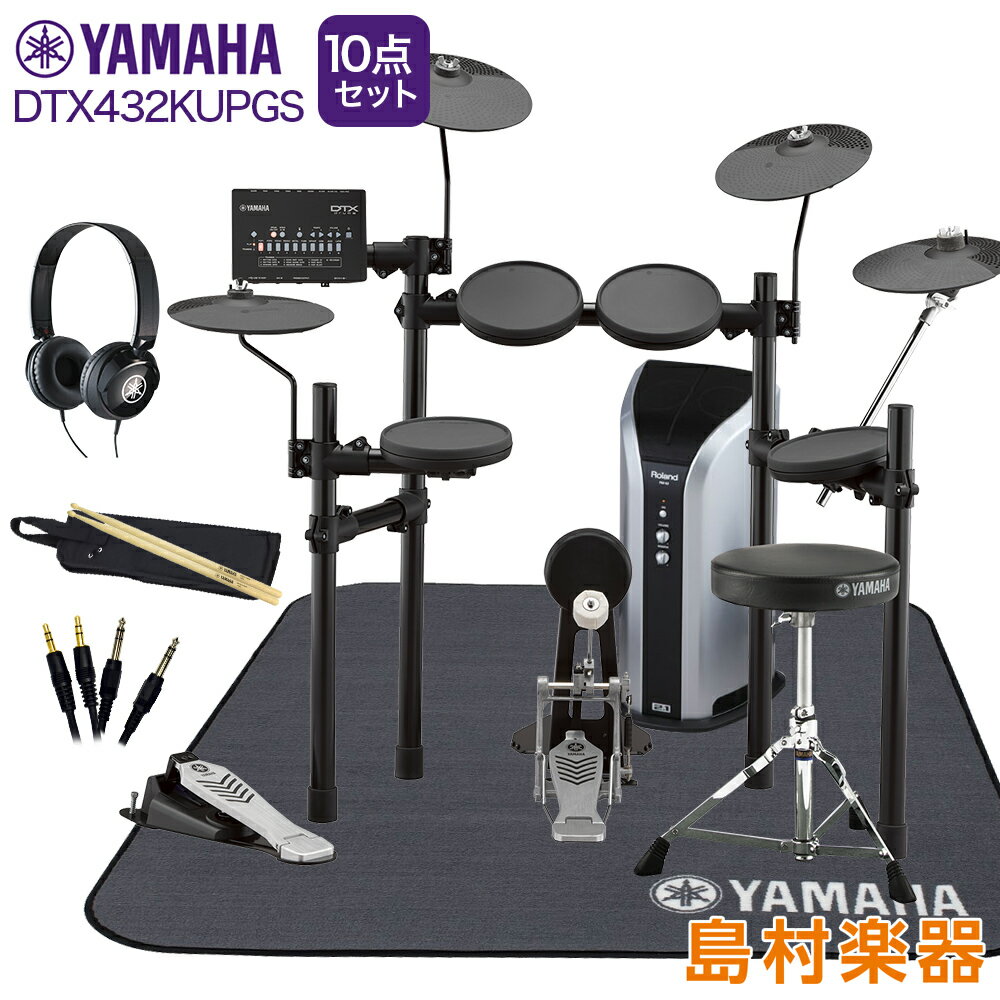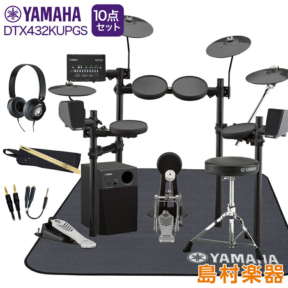 YAMAHA DTX432KUPGS スピーカー・3シンバル拡張 ヤマハ純正マット/ヘッドホン付き10点セット 【PM03】 電子ドラム セット DTX402シリーズ ヤマハ
