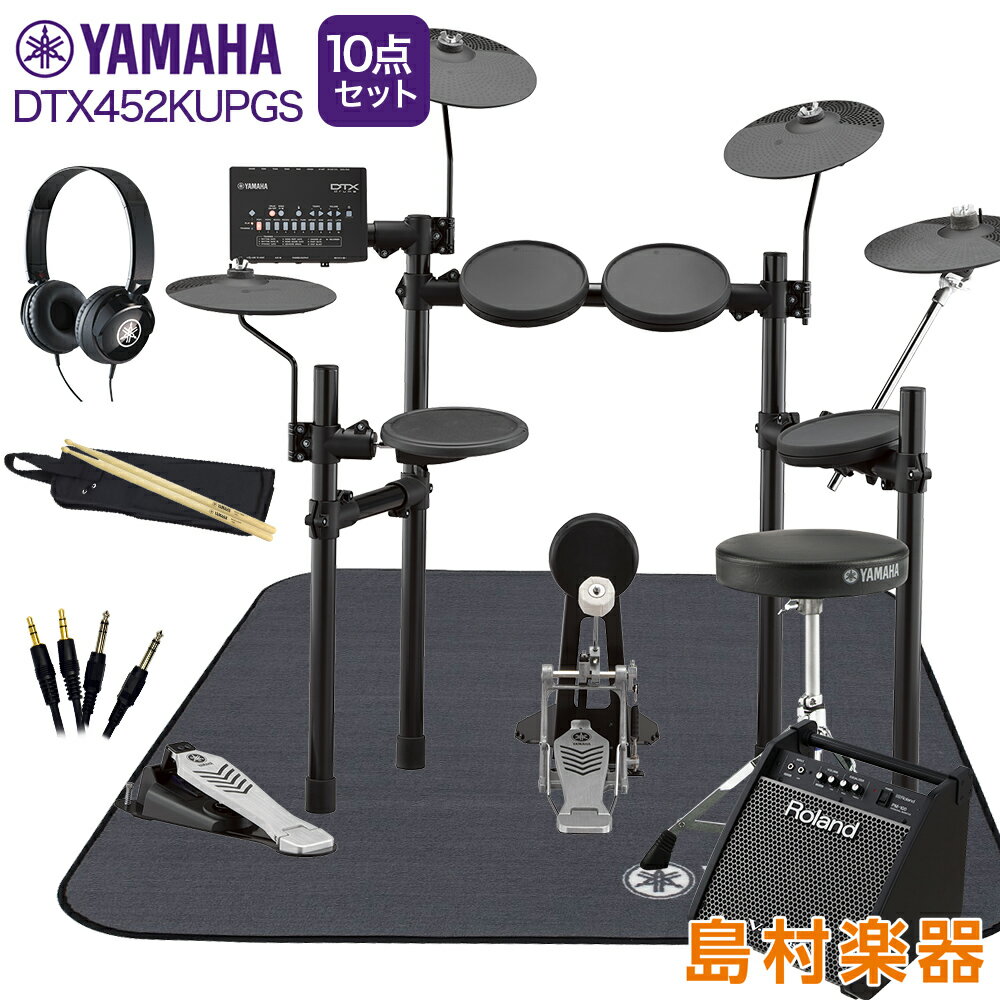 YAMAHA DTX452KUPGS スピーカー・3シンバル拡張 ヤマハ純正マット/ヘッドホン付き10点セット 【PM100】 電子ドラム セット DTX402シリーズ ヤマハ