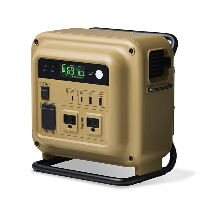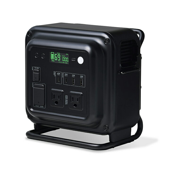 ■アウトドアに最適なポータブル電源です。小型の調理機器や電気毛布などを十分に使える容量と、軽量・コンパクトで持ち運びやすさを両立。アウトドアシーンに特化したデザインで、ソロ・デュオキャンプで活躍します。■アウトドアに特化したバッテリーギアブランド NESTOUT(ネストアウト)のポータブル電源です。 ■1泊2日のソロ・デュオキャンプで活躍する700Whモデル。スマートフォンなどの充電はもちろん、小型の調理機器や電気毛布なども一晩中使用可能です。 ■容量700Wh台のポータブル電源では最小・最軽量クラスを実現。簡単に持ち運べて車やテントの中でも邪魔にならず、快適に使えるちょうどいいサイズです。 ■地面の影響を受けにくいデザインを採用。地面の水濡れや砂、凹凸などの影響を最小限に抑えます。 ■内部へゴミが入り込むことを防ぐダクトフィルターを搭載。ダストプルーフ構造で砂や細い枯れ草などが侵入しにくく、着脱可能でメンテナンスも簡単です。 ■持ち運び用の背面バーハンドルはプロテクターとしての役割を果たし、ボディを保護します。 ■側面のサイドバーに、付属のサイドケースを取り付け可能。充電中のスマートフォンやケーブルを収納できます。その他フックやホルダーも掛けられます。 ■防滴・防塵のキャリーケース付き。汚れたギアなどと一緒に持ち運んでもポータブル電源を水や汚れ、傷から守ることができます。また、内部のポケットにはACアダプターやケーブルなどの付属品をすべて収納でき、まとめて保管できます。 ■持ち運びに適した三元系リチウムイオン電池を採用。モバイルバッテリーで最も多く使用されている電池で、出力が安定しているのが特徴。エネルギー密度も高いため、軽量コンパクトを実現できます。 ■搭載のリチウムイオン電池は充電式で、約500回繰り返し使用可能。週1回キャンプで使用する場合、約9.5年(※)使い続けられます。JIS C8711およびJIS C8712(JIS C8714の内容を含む)に準拠した安全設計です。 ■※1回のキャンプで約10時間、電気毛布へ給電した場合。接続する機器の消費電力量によって短くなる場合があります。 ■扇風機を約14.2時間、電気毛布を約10.1時間、LEDライトを約41.5時間連続で使えます。NESTOUT COOKER 1では水500mlを約9回、炊飯(1合)を約8回可能。日中も夜間も、オールシーズン必要な電力を賄える容量です。 ■※充電可能な目安時間については、仕様欄を合わせてご確認ください。 ■合計7口からの出力が可能。ACコンセント×2、カーアクセサリーソケット×1、USB Type-C(TM)ポート×2、USB-Aポート×2を搭載しています。屋外で必要な幅広い機器に給電できます。 ■AC出力コンセントは2ポート合計700Wまで出力できます。3ピンプラグにも対応。電気毛布や電気調理器、小型炊飯器などの機器を使用できます。 ■USB Type-C1ポートは、入力/出力の両方が可能。USB Power Delivery 最大60Wでの給電が可能なほか、USB Type-C AC充電器を利用してこのポートから本製品を充電できます。 ■※USB Power Delivery 60W以上のUSB Type-C AC充電器をご使用ください。また、給電するデバイスがUSB Power Deliveryに対応している必要があります。 ■USB Type-C2ポートでは15W、USB-A1ポートでは12W、USB-A2ポートでは18Wまでの給電が可能。スマートフォンやタブレットなどの充電に便利です。 ■※USB Type-C2ポートとUSB-A1ポートの同時使用時は、合計最大15Wまで給電します。 ■本製品への入力が可能なカーアクセサリーソケットアダプター(シガーチャージャー)を付属しています。カーアクセサリーソケットは最大120Wでの出力が可能です。 ■別売のソーラーパネル(型番:MPA-SP100D)を使って本製品を太陽光で充電することも可能。約8.8時間で100%まで充電できます。屋外でも電源を確保できる安心があります。 ■電池残量や本製品の充電にかかる時間など、必要な情報はLCDディスプレイで確認できます。使用状況がひと目で分かるため、計画的に使えて安心です。 ■LEDライト付き。暗い場所でも手元や周囲を照らすことができます。 ■ACコンセントは正弦波で出力されます。自宅で使用している家電を同じように使えます。 ■過充電・過放電・過電圧・過電流防止機能および短絡保護機能を備えた安心の回路設計です。 ■本製品にUSB AC充電器およびUSBケーブルは付属していません。スマートフォンの充電などを行う際は、対応する充電用機器を別途ご用意ください。 ■※工場出荷時に70%程度充電されています。充電式リチウムイオン電池は時間とともに放電するので、はじめてお使いになるときは、本製品を十分に充電してからご使用ください。 ■※充電が空の状態で長期保管すると、性能が劣化したり、充電ができなくなったりする場合があります。本製品を長期保管するときは、定期的に60%〜80%程度の充電をしてください。 ■※USB Type-C and USB-C are trademarks of USB Implementers Forum■DC入力口数:DCジャック(外径5.5mm×内径2.1mm)×1■DC定格入力電力:120W■DC定格入力電圧:ソーラーパネル入力:10V〜30V、