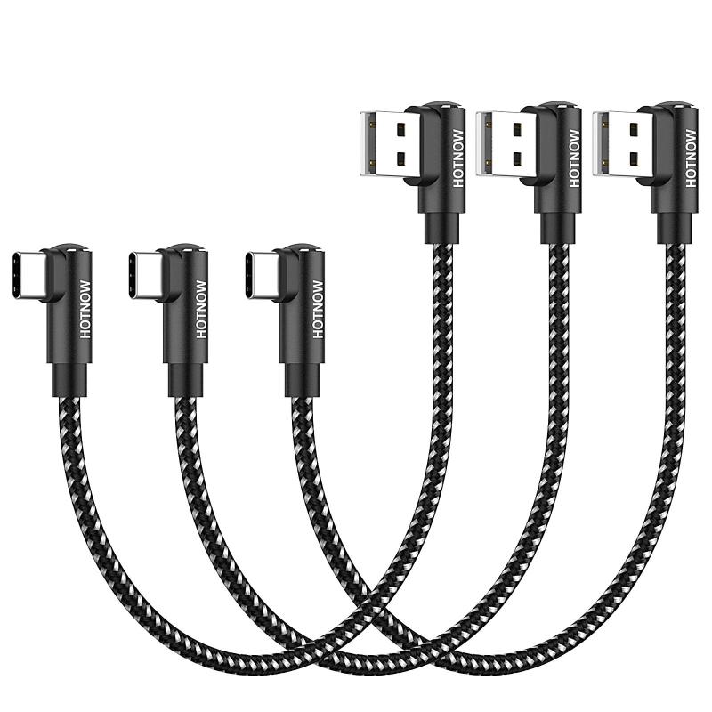 短い 0.15m USB C ケーブル 直角、HOTNOW [3 本 15cm] ポータブル USB-C 充電器 ナイロン編組高速充電コード Galaxy S25 S23 S8 Plus Note 9 8、iPhone 16 15、パワーバンクおよびその