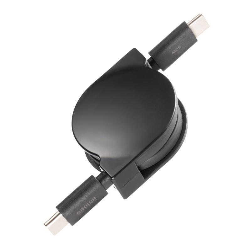 サンワサプライ USB2.0 Type-C 巻取りケーブル PD60W ブラック KU-CCP60M08BK