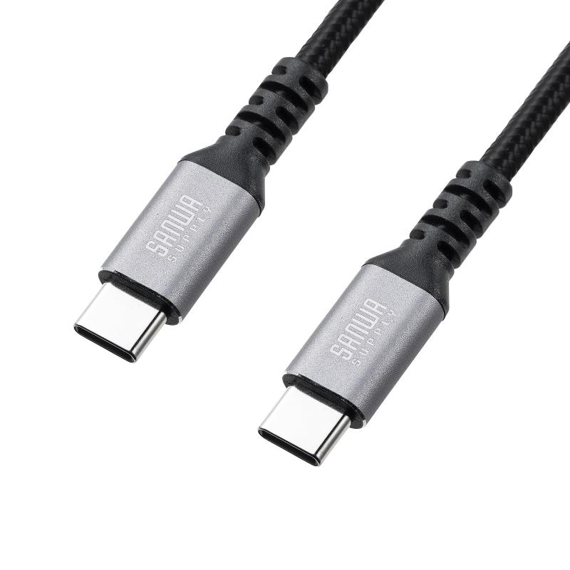 サンワサプライ USB 2.0 Type-Cケーブル(C-C・ストレート・60W・0.5m) KU-CCP6005TKUSB Type-Cポートを持つパソコンやタブレット端末などと、USB機器(Type-Cポートを持つ機種)を接続するためのケーブルです。最大480Mbpsの高速データ転送が可能です。急速充電、最大PD60W(20V3A)に対応しています。ハイエンドで美しく、頑丈で耐摩耗性があるアルミのコネクタを採用しています。外皮にポリエステルメッシュを採用しており、高密度編組で覆われて強度と靭性が高く断線しにくいケーブルです。