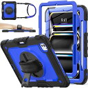 SEYMAC stock iPad 10.2インチ 第9世代/第8世代/第7世代 ケース 耐衝撃 保護フィルム付き ペン収納 360°回転スタンド ハンドストラップ ショルダーストラップ 全面保護カバー (ブルー+ブラック)