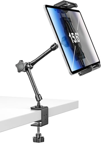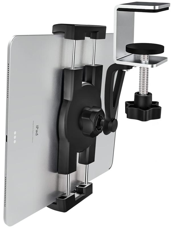 EXSHOW キッチンタブレットスタンド 両用スマホスタンドタブレットホルダー IPADスタンド クリップ式 キッチンスタンド テーブル デスク タブレット スタンド クリップ 卓上用タブレットクラ「多機能タブレットフォンホルダー」キッチン、寝室、オフィス、カフェ 、ホスピタル、学校図書館、屋外などさまざまな場所でご利用いただけます。クリップタイプで、厚さ41mm以下のキャビネット、棚、テーブル、デスクなどに取り付けられます。「安定感抜群」お使いのデバイス(携帯電話/タブレット)を大切にするために、揺れたり滑ったりすることなくデスクトップにしっかりと立つこの滑り止めホルダーを設計しました。丈夫に耐久性のあるアルミニウムアームはおデバイスを保護するように設計されており、傷のつきにくいクリップがタブレットPCやスマートフォンを家具に傷を付けずに安全に保ちます。「自由に回転・調整」360度回転のタブレットサポートホルダーは、最高の視角を提供できます。タブレットを調整し、任意の角度と位置に配置するだけです。料理、電子書籍の閲覧、音楽の鑑賞、友達とのチャット、映画鑑賞、ゲームなどに最適です。「多機種対応」このユニバーサルアルミニウムクランプタブレットスタンドは、すべての4〜13インチのスマートフォンおよびタブレットと互換性があります。対応タブレット:iPad Pro 9.7 / 10.5 / 11 / 12.9インチ、iPad Air 2、Air 3、Air 4、iPad Mini 1/2/3/4/5、iPad(第8世代)/7/6/5。対応携帯電話:iPhone 12、12Pro、12Pro Max、11 Pro Max、11 Pro、11、Xs Max、XR、XS、X、8 Plus、8、7 Plus、7、6 / Galaxy Tab / Galaxy Note / Galaxy S21、S20、S10 / Sony / Huawei。「視力を守り、首の負担を軽減」このタブレットラックは、キッチンで料理をしながらレシピを見るのにも適しています。 タブレットを見下ろす必要はありません、それはあなたの首に良いです。