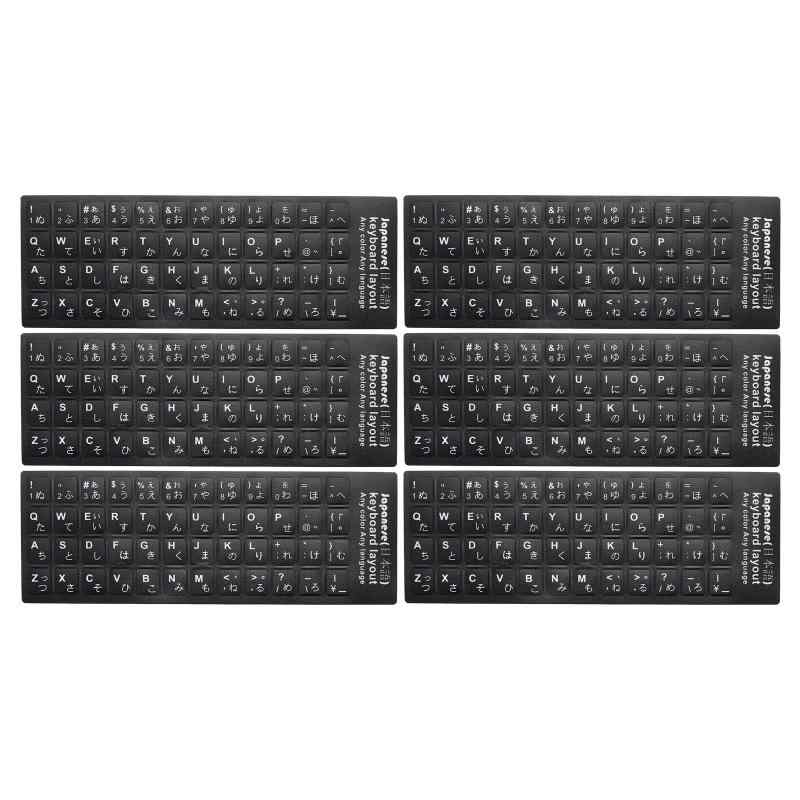 PATIKIL 日本語キーボードステッカー 6個 ユニバーサル キーボード交換用カバー つや消し ノート デスクトップコンピューター用 ブラックバックグラウンド ホワイトレタリング