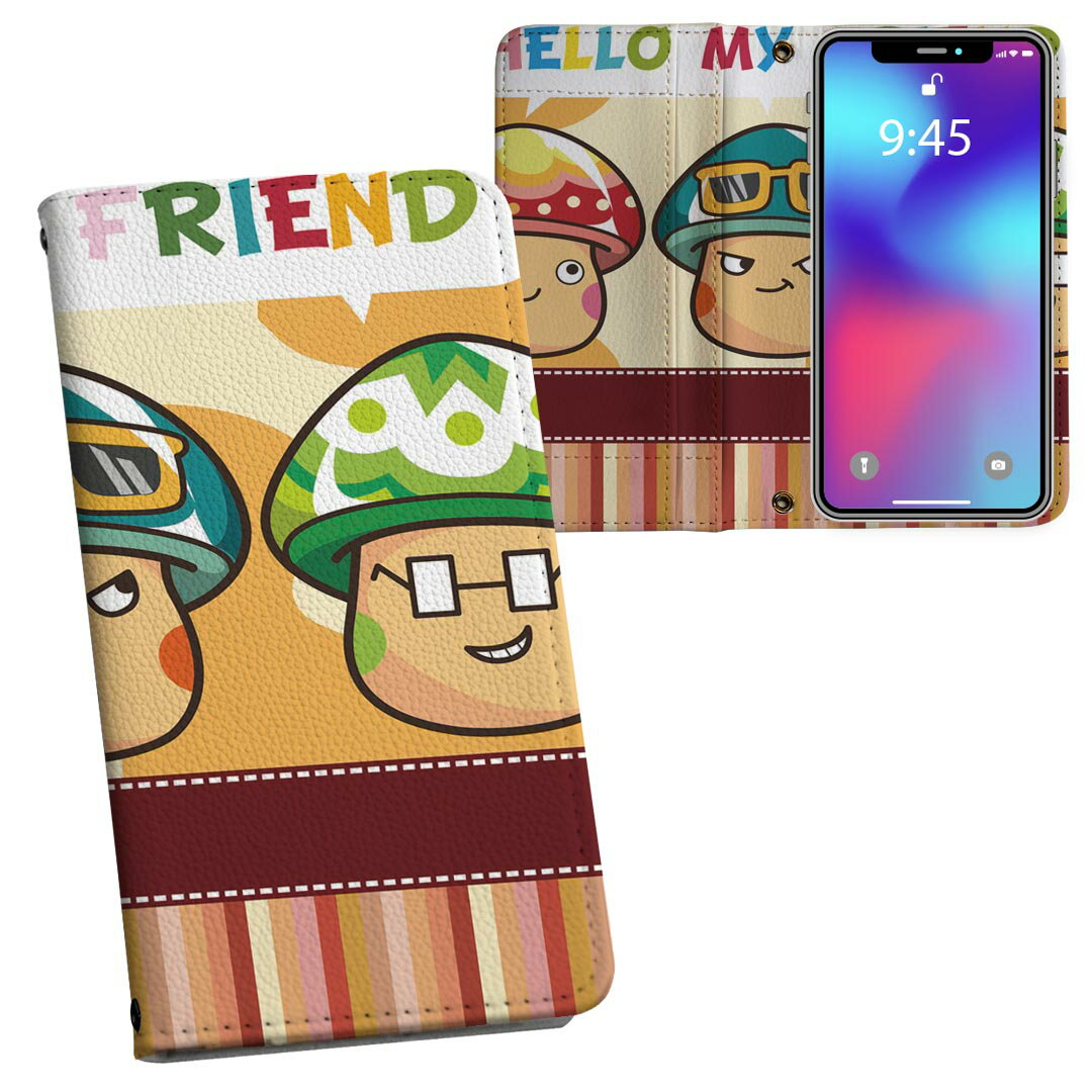 iPhone11 Pro 5.8インチ 専用 iphone11pro アイフォン softbank docomo au 両面プリント 裏表 内側 内面 スマホ カバー レザー ケース 手帳タイプ フリップ ダイアリー 二つ折り 革 フルデザイン 014808 きのこ 手描き カラフル