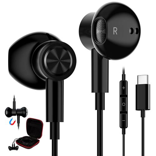 タイプ c イヤホン 有線 マイク付き インナーイヤー型 HIF音質 重低音 通話対応 磁気 対応iphone 16 15 Pro max plus/iPad 10世代 Air4 5 mini 6/Switch/Galaxy/Xperia/Google Pixel 8 7a 6a USB Type-Cイヤホン ノートPC MacBookなど対応 音量調節リモコン操作 収納ケース付