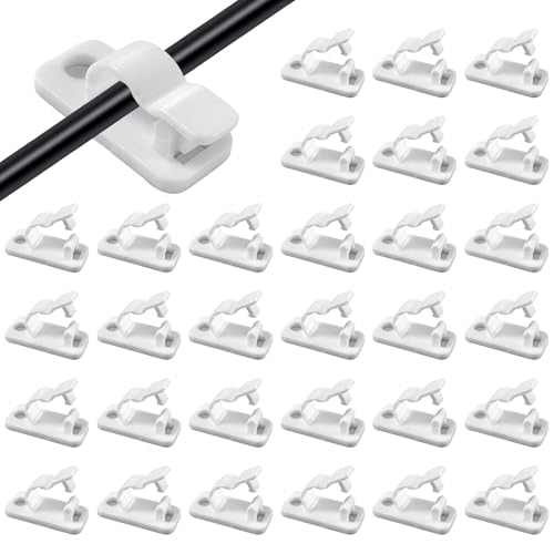 Lasocy ケーブルクリップ Rタイプ コードクリップ lanケーブル 壁 固定 コード隠し テープ ネジ両用 強力粘着力 コードフック USBケーブル 電源コード ACケーブルなど 配線止め ホワイト 30個セット