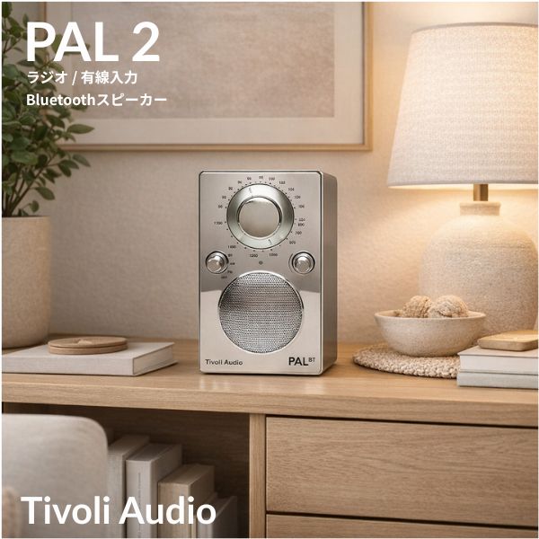 Tivoli Audio PAL BT Generation2 Bluetooth 5.0 ポータブル ラジオ スピーカー Chrome # PALBT-9481-JP チボリオーディオ (Bluetooth接続スピーカー ) おしゃれ クローム 防災 tes25