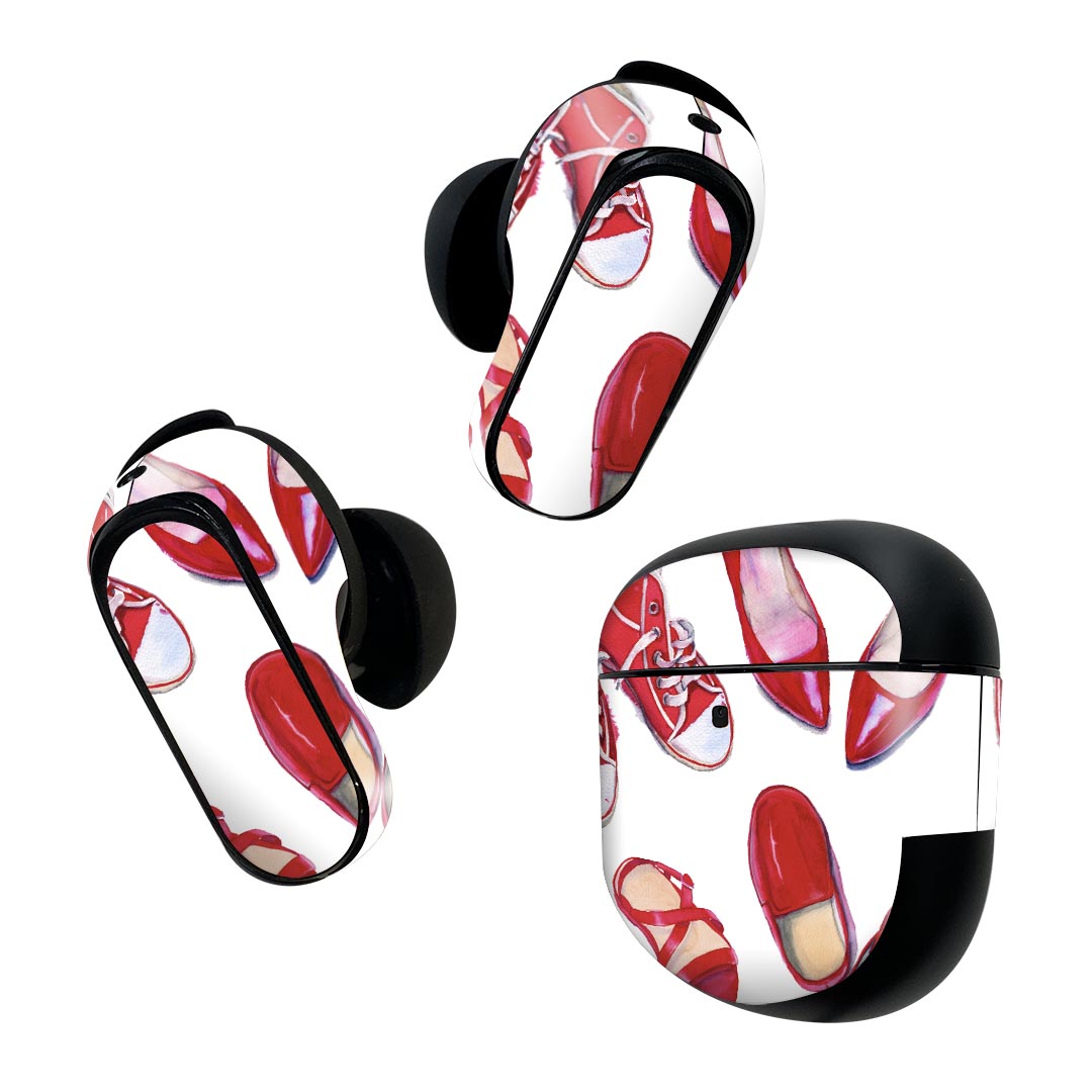 Bose QuietComfort Earbuds II 用 スキンシール ボーズ イヤバッズ2 用 ステッカー 本体3セット ケース1セット 保護 フィルム デコ 靴 スニーカー 赤 014766