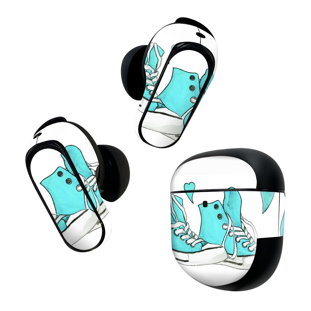 Bose QuietComfort Earbuds II 用 スキンシール ボーズ イヤバッズ2 用 ステッカー 本体3セット ケース1セット 保護 フィルム デコ 人物 スニーカー 足 022939