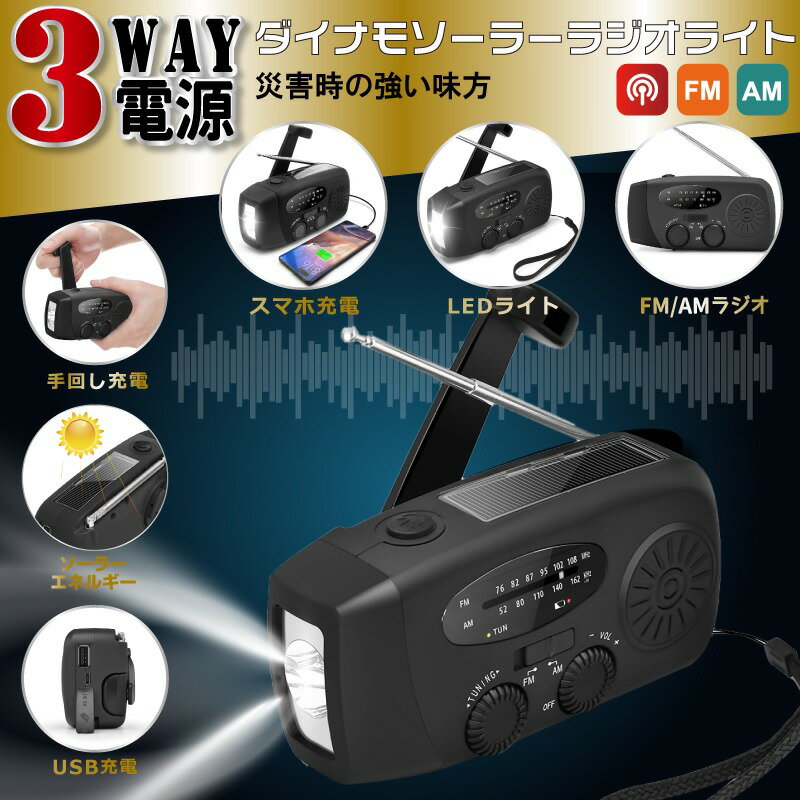【防災士監修!台風・地震・津波】3Way電源 防災ラジオ 手回し充電 多機能ラジオ ソーラー充電 懐中電灯 防災 ラジオ コンパクト 軽量 小型 ラジオ スマホ充電 モバイルバッテリー USB充電 LEDライト 防災ラジオ 太陽光発電 災害 電池 2000mAh 防災グッズ SOS アラーム AM FM