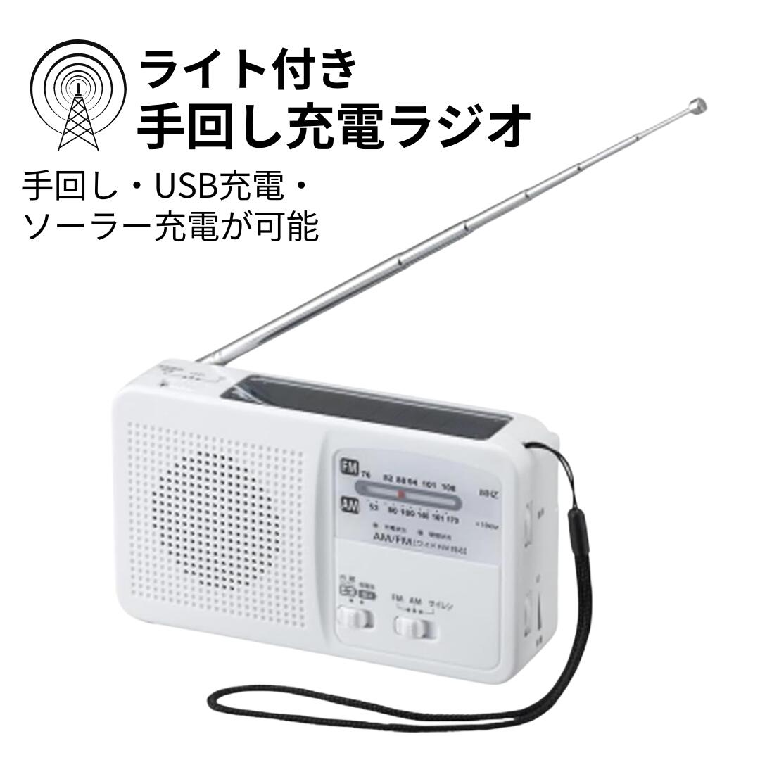 手回し充電ラジオ ライト付き BS901WH| 太陽光発電 手回し充電 蓄電アウトドア 防災 防災グッズ アウトドア ソーラー 災害・緊急時の備え