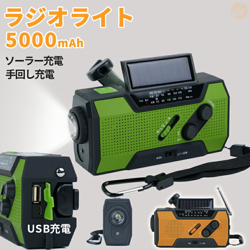 ・防災ラジオ、しっかり備えていますか?・そのラジオ、緊急時に安心してちゃんと使えますか?・ライトの電池大丈夫ですか?災害は今すぐやってきてもおかしくありません。気づいたときにすぐに用意しておくことをお勧めいたします。【防災・アウトドアに最適!】コンパクトサイズながら4つの電源方式で、LEDライト付きの防災ラジオの決定版!災害時から、ご自宅、アウトドアなどにも便利なポータブルラジオです。ラジオ・スピーカー・防水性能IPX3・ソーラー・電池・充電・手回し・SOSサイレン機能と、災害時もしっかり安心して使える機能を備えた多機能モデルです。ライト付きLCD画面つきで昼間も夜間もとても見やすいです。 また、PSEマーク取得済みの安全性もありますので安心してご使用下さい。【ラジオ機能】全周波数:FM:76-108MHZ AM:522-1620KHZワイドFM対応で、AMの電波が悪い状況でも、強い電波のFM電波を利用しAMを聴くことができます。感度もよく、スピーカー性能もいいので安定した使用ができます。(※使用場所により、電波が届きにくいところもございますので、必ず入ることを保証するものではございません。)【長時間使える4000mAhのリチウムバッテリー】付属のUSBケーブルで6〜7時間でフル充電となります。(micro-USBケーブル付属)【音楽プレイヤー】ラジオだけじゃなくて、好きな音楽も聴きたい、、そんなときはスマホやオーディオデバイスを接続して、AUXを利用したLINE入力で音楽を聴くことができます。付属の3.5mmケーブルをご利用ください。(イヤホンでラジオを聴くことはできません。)【4つの電源方式】・内蔵の4000mAhの電池をケーブルで充電。・単四電池×3本で使用・ソーラー充電・手回しで手動で充電上記の方法があり、電気の確保ができない緊急時も安心です。【ライト機能】懐中電灯は持ってるけど、電池切れてないかな、充電って電気止ってたらどうしよう、、そんなときも安心。持ち手もついているライト付きラジオなので、懐中電灯代わりにもなります。手回し、ソーラーでも電源確保できて安心です。【SOSサイレン機能】閉じ込められちゃった、緊急を伝えたい、そんなときもSOSボタンを押せば大音量のサイレンと、ライトの点滅で居場所と緊急性を瞬時に周囲に伝えることができます。いざというとき、とても助かる機能です。【IPX3の防水性能】生活防水機能も備えているので、キッチンでラジオを聴きながらお料理、キャンプでのご使用でも安心。1セットの商品内容防災ラジオ x1、micro-USBケーブル x1、両3.5mmケーブル x1、日本語取扱説明書 x1商品仕様:AM:522-1620KHzFM:76-108MHzサイズ:202x90x80mmカラー:ブラック、オレンジ、グリーン電池容量:4000mAh※ご注意本商品は、電波法令で定められている技術基準に適合していることを証明する技適マークが貼付されていない無線機器であり、日本国内で使用する場合は、電波法違反になるおそれがございます。ご使用の際には、十分ご注意いただきますようお願いいたします。詳しくは、最寄りの総務省総合通信局へお問い合わせください。※イヤホンでのご利用はできません。※撮影用小物類などは付属しておりません。※簡易包装でのお届けとなります。※モニターにより色合いが若干違いが生じる場合がございます。※デザインは入荷時期により若干変化する場合がございます※海外製造品のため、多少の匂い軽微な傷や汚れ、個体差等ある場合がございます。※商品の使用により生じた如何なる損害・被害も弊社では一切の責任を負いかねますので予めご了承ください。※発送方法について:お届け先、個数によって配送情報に記載の配送業者とは異なる場合がございます。日本郵便、または佐川急便(配送方法はご指定頂けません)でお届けいたします。
