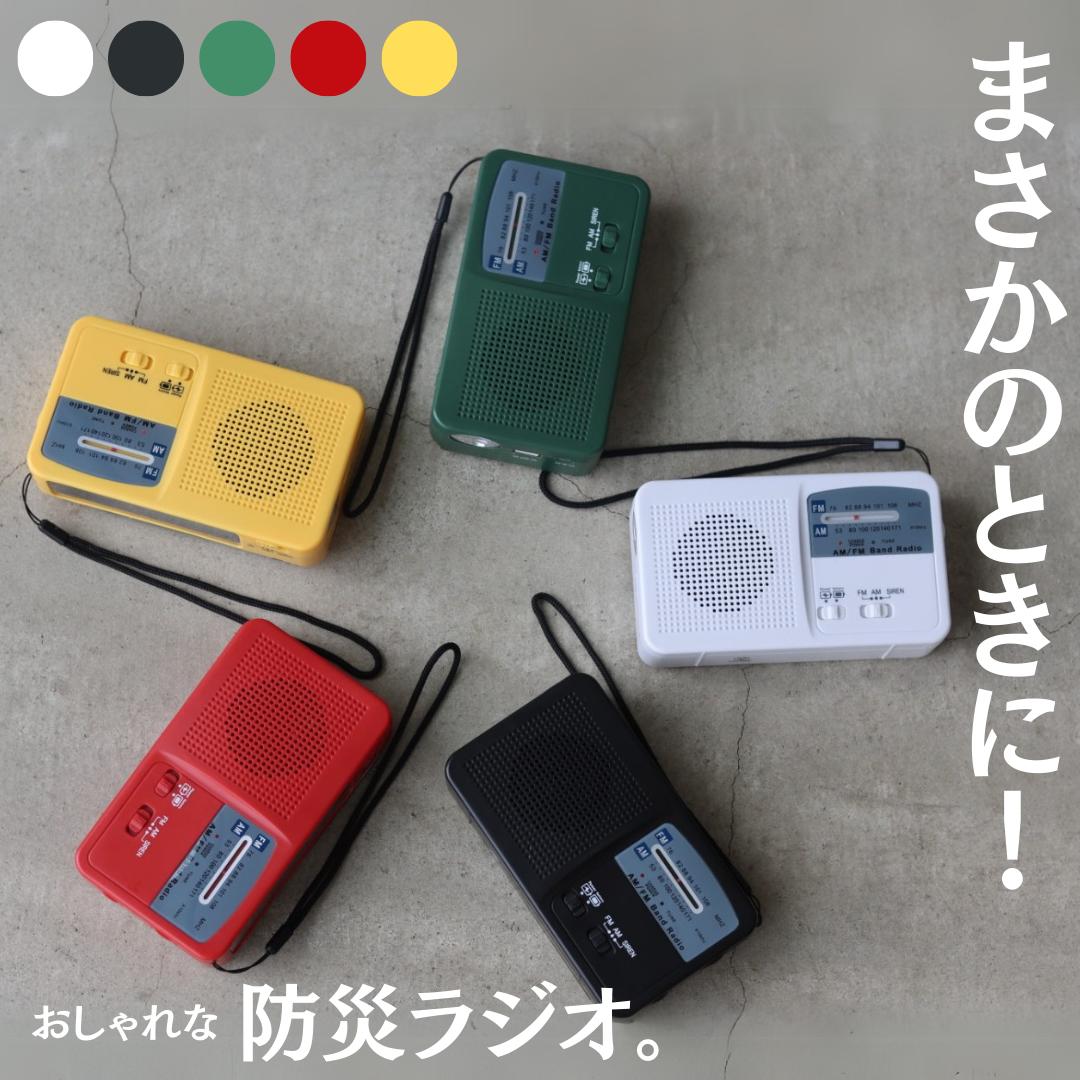 備えあれば憂いナシ!!1台5役の多機能防災ラジオ登場 ラジオ・懐中電灯・読書灯・モバイルバッテリー・SOSアラームの5つの機能を搭載した多機能ラジオ。 キャンプのお供や防災グッズとして、一家に一台備えておくと安心のアイテムです。 様々な場面で役立つ便利な機能AM/FMラジオ/懐中電灯/読書灯/モバイルバッテリー/SOSアラーム 「電池切れ」を徹底回避! 3WAY充電+乾電池式で安心USB充電/手回し充電/ソーラー充電/単4乾電池×3本 突然の雨でも安心生活防水IPX3 こちらのラジオはIPX3の防水性能(生活防水)が備わっているので、屋外で使用している際に突然雨が降ってきても安心です。 ※完全防水ではないので激しい水濡れや水没などは防ぐことができません。 ※IPX3:鉛直から60度の範囲で落ちてくる水滴による有害な影響がない。(防雨形)製品仕様 サイズ(約) (W)15.7×(D)5.3×(H)7.4cm 重量(約) 310g 材質 ABS樹脂、ポリカーボネート、ポリ塩化ビニール カラー オレンジ/グリーン 生産国 中国 注意点 ※完全防水ではないので激しい水濡れや水没などは防ぐことができません。 ※IPX3:鉛直から60度の範囲で落ちてくる水滴による有害な影響がない。(防雨形) ※商品はモニターの発色によって実際のものと色が異なる場合がございます。 ※仕様・デザインは予告なく変更することがあります。