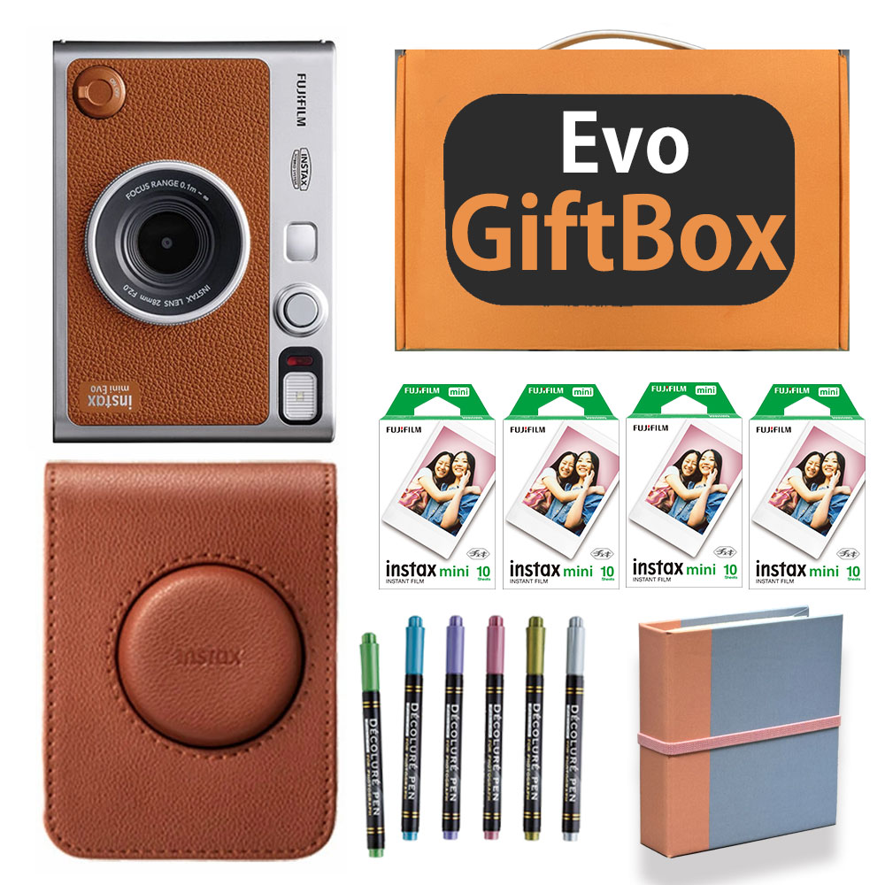 【ギフト チェキB】富士フィルム(フジフィルム)ハイブリッドインスタントカメラ チェキEvo C ブラウン instax mini Evo C BR カメラケース付き ギフトBOXセット チェキフィルム付き
