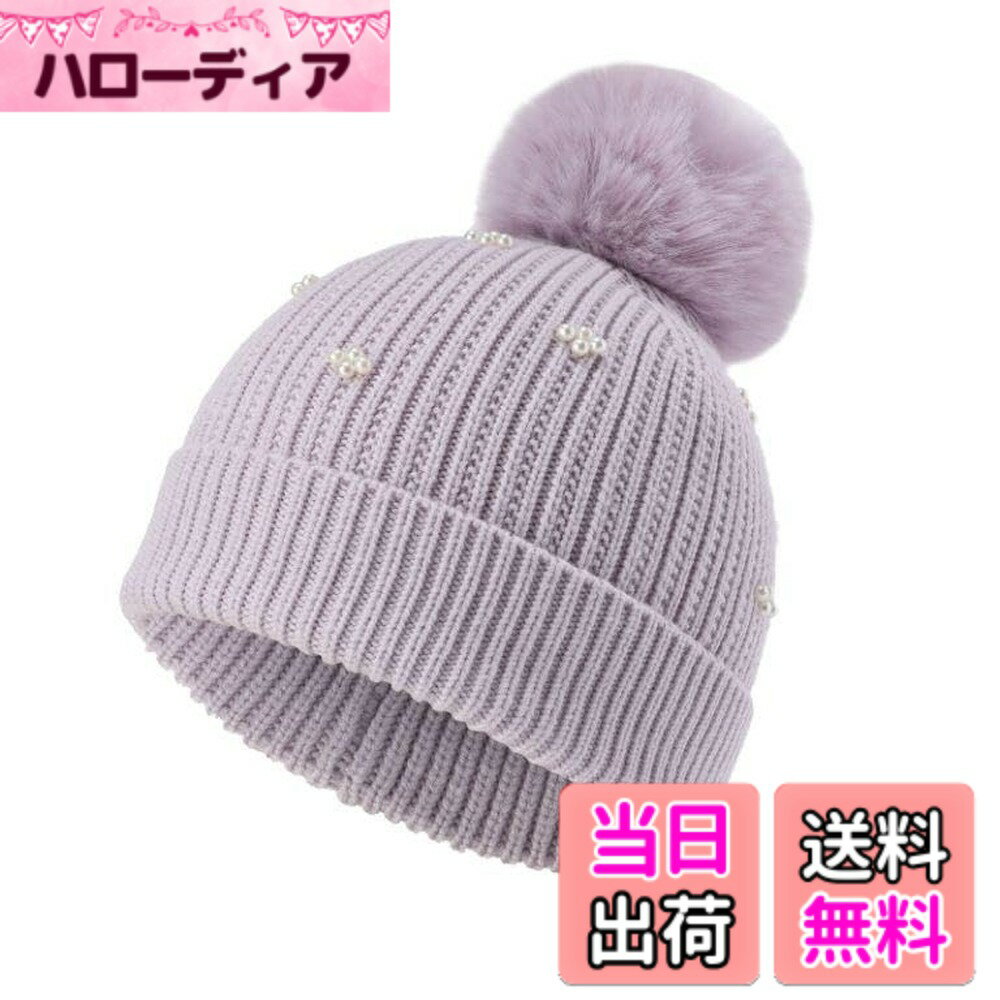 【送料無料】[FairyMary] キッズ ニット帽 子供 防寒 スキー 冬 ポンポン 可愛いぽんぽん ポンポン付き クリスマス プレゼント 色:パープル、サイズ:Free Size