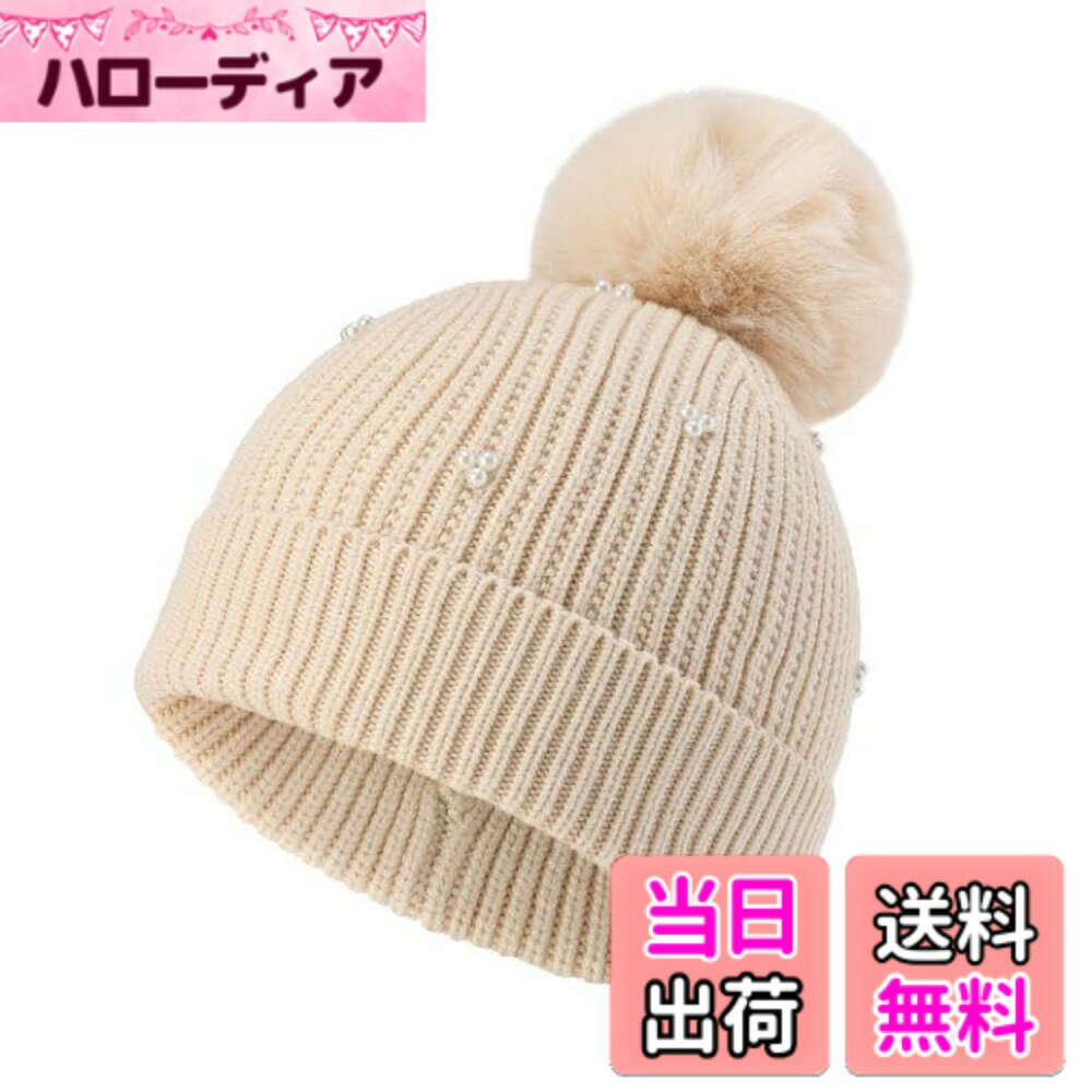 【送料無料】[FairyMary] キッズ ニット帽 子供 防寒 スキー 冬 ポンポン 可愛いぽんぽん ポンポン付き クリスマス プレゼント 色:クリーム、サイズ:Free Size