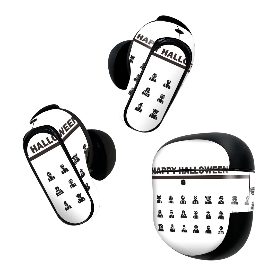 Bose QuietComfort Earbuds II 用 スキンシール ボーズ イヤバッズ2 用 ステッカー 本体3セット ケース1セット 保護 フィルム デコ ハロウィン 黒 アイコン Halloween 026110