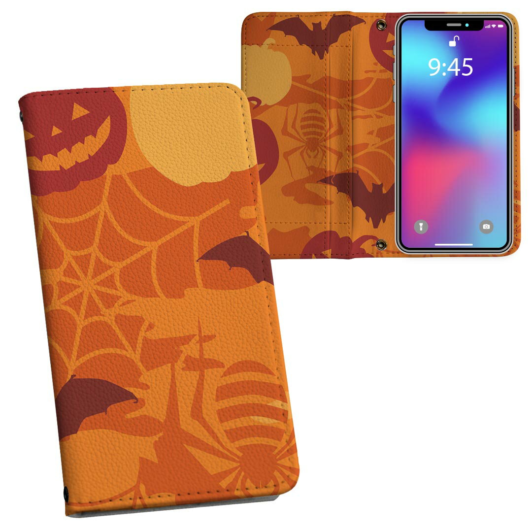 iPhone11 6.1インチ 専用 iphone 11 アイフォン softbank docomo au 両面プリント 裏表 内側 内面 スマホ カバー レザー ケース 手帳タイプ フリップ ダイアリー 二つ折り 革 フルデザイン 008514 ユニーク ハロウィン オレンジ カボチャ 模様