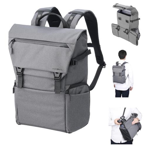 ハクバ HAKUBA カメラバッグ プラスシェル シティ フラップバックパック12 G05 AZ グレー カメラリュック ビジネスバッグ 背面アクセス サイドアクセス 2気室 普段使い AMZSP-CT5FBP12G 4977187001723