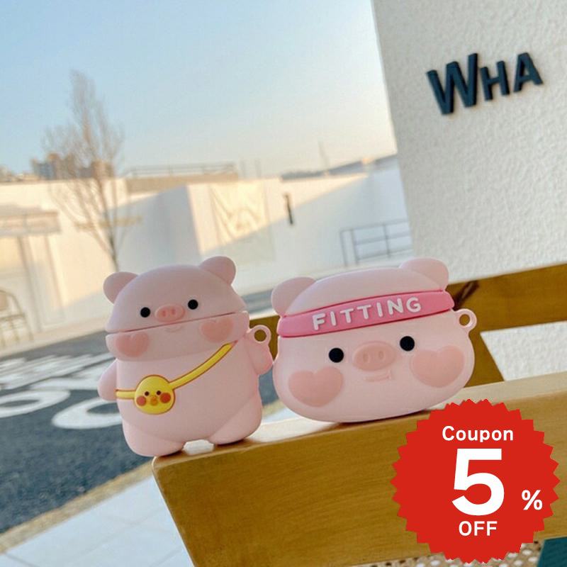 airpods ケース 韓国 airpods proケース おしゃれ 第2世代 ケース カバー airpods 2 3 第3世代 第1世代 第2世代対応 ピッグモチーフケース ブタ しっかり カバー 大人 女性 フック付き