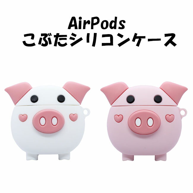AirPods 用 シリコンケース こぶた カラビナ付き 全2色 ケース カバー ワイヤレス充電モデルも対応! かわいい 小ぶた
