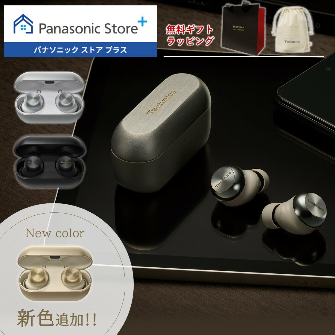 【新色追加】【公式店】テクニクス 完全ワイヤレスイヤホン 選べる3色 EAH-AZ100 無料ギフトラッピング クリスマスショッパー付 ノイズキャンセリング マルチポイント対応 LDAC対応 ドライバー10mm Technics 高音質 防滴 マイク 通話 コンパクト Type-C 送料無料