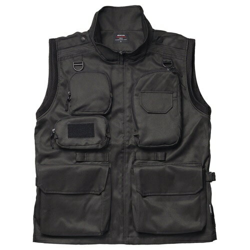 撮影時に必要な交換レンズやコンパクトカメラ、フィルター、ストロボ、ミニ三脚、スマートフォン等の小物が入る多数のポケットを装備し、背面の大型ポケットにはA4サイズの書類が入る、収納性に優れたカメラマンベストです。自然に着こなせ、カメラを首から提げた際の不快感を軽減するスタンドカラー(襟)仕様です。カメラを首から提げた際の不快感を軽減するスタンドカラー仕様自然に着こなせ、カメラを首から提げた際の不快感を軽減するスタンドカラー(襟)仕様です。ストラップのずり落ちを防ぐ固定ベルトカメラを肩掛けして携行する際にストラップがずり落ちるのを防ぐ、ホック留めの固定ベルトを左右両肩に装備しています。カメラの揺れを抑えるストラップ固定ベルト腹部に設けたホック留めのストラップ固定ベルトにより、カメラを首から提げて携行する際に生じる揺れを抑えます。機材の傷つきを防ぐファスナー保護カバー正面中央のメインファスナーには保護カバーを装備しており、ファスナーにより機材が傷つくのを防ぎます。ウエストサイズを調整できるアジャスターベルトアジャスターベルトにより体型に合わせてウエストサイズを調整できます。フィルターやレンズキャップ等の収納に適したファスナーポケット右胸上部に備えたファスナーポケットは、フィルターやレンズキャップ等の収納に適しています。小物の収納に適したキーフック付きのポケット右胸下部に備えたファスナーポケットは、コンパクトカメラや小物等の収納に適しています。内側にはキーフックを、外側にはワッペンなどを取り付けられる面ファスナーを装備しています。ストロボやミニ三脚等の収納に適したファスナーポケット左胸部分に備えた縦長のファスナーポケットは、ストロボやミニ三脚等の収納に適しています。スマートフォン等の収納に適したポケット左胸部分にはスマートフォン等の収納に適した面ファスナー式のポケットを備えています。クッション材の入った大型ポケット正面下部にはクッション材入りの大型ポケットを備え、一眼カメラのボディ等を収納できます。クッション材の入った大型ポケット正面下部の大型ポケットをは交換レンズの収納にも適しています。ハンドウォーマーポケット手を入れるのにちょうど良い位置に、手を温めるハンドウォーマーポケットを装備しています。A4サイズの収納が可能な大型の背面ポケットA4サイズの書類や雑誌等が収納できる大型のファスナーポケットを背面に装備しています。開口部を左右両側に設けており、左右どちらからも出し入れが可能ですカラビナ等を掛けられるループカラビナ等を掛けられるループを左右のウエスト部分に装備しており、フォトグローブやポーチ等をぶら下げられます。
