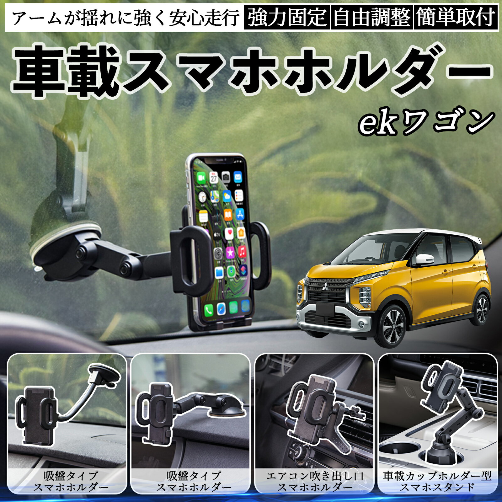 三菱 ekワゴン クロス スペース クロススペース B3系 車載ホルダー スマホホルダー スマホスタンド 吸盤式 超強力吸盤 吹き出し口 折りたたみ式 自由調節 ienobenrikan