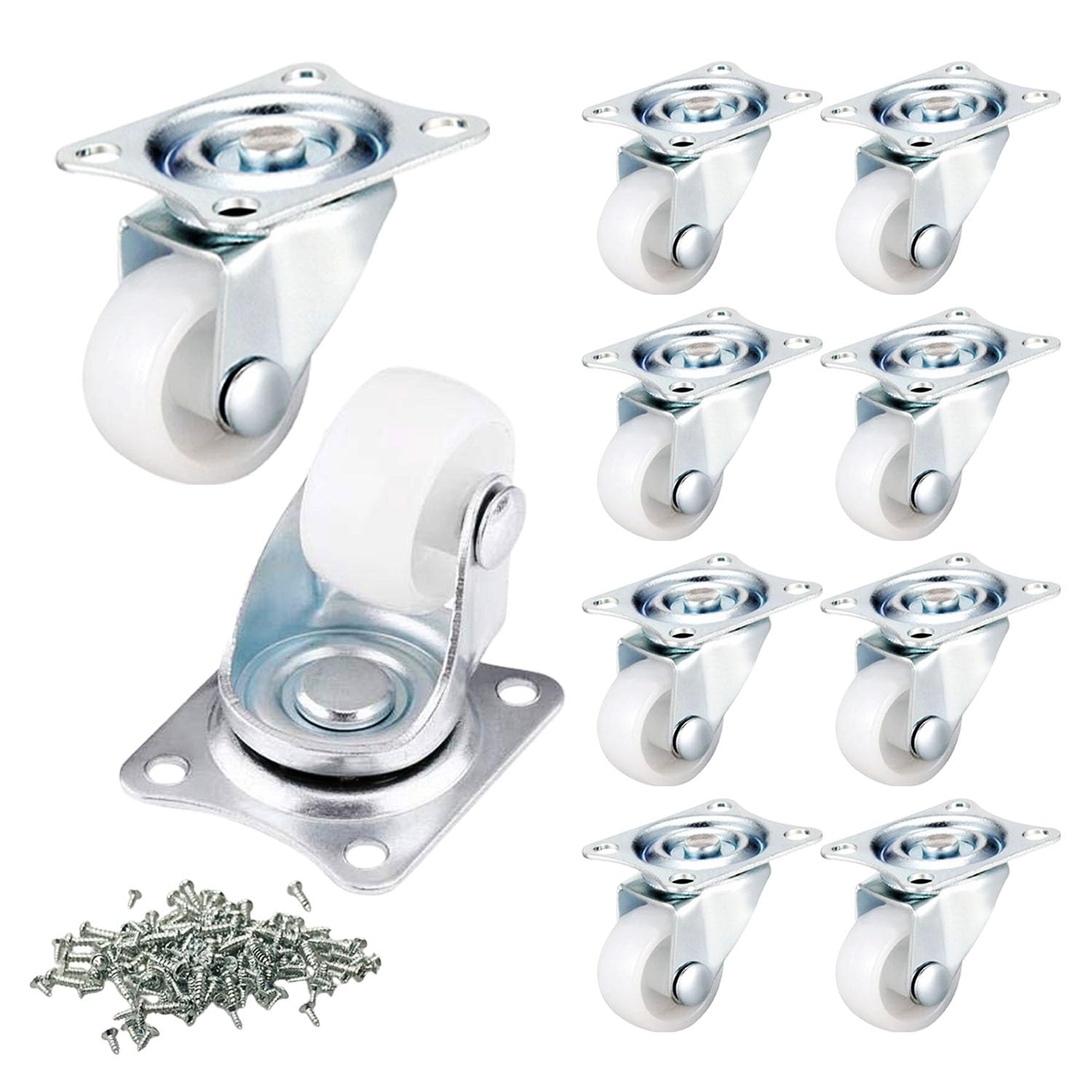 【送料無料】Aicosineg プレート式キャスター 10個入り 360度回転 静音 1インチ 自在キャスター 固定式キャスター ネジ付き 台車キャスター 交換タイヤキット キャスター 小さい ワゴン テーブル 椅子 棚 家具 便利グッズ ナイロン車 車輪径φ25 ホワイト