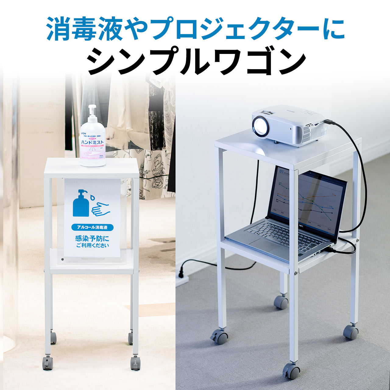 【楽天1位受賞】プロジェクター台 キャスター付 消毒液 台 スタンド ポンプスタンド プロジェクタースタンド ノートパソコン台 電話台 シンプル 受付 マルチワゴン マルチスタンド