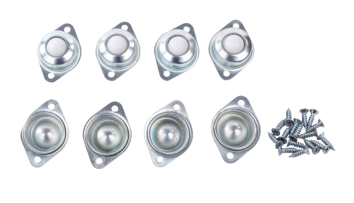 【送料無料】ナイロン ローラーボール キャスター 8個セット 取付ネジ付 (ボール径 15mm 耐荷重20kg 360度回転) 家具 移動 ワゴン 自作 色:シルバー,ホワイト