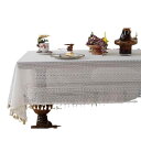 テーブルクロス フレンチカントリー レトロ ヴィンテージ レース タッセル付き ゴールド縁 長方形 防塵 埃よけ 滑り止め加工 インテリア装飾 テレビボードカバー リビングテーブルクロス ポリエステル製 幾何学模様 ホワイト アイボリー ライトブラウン