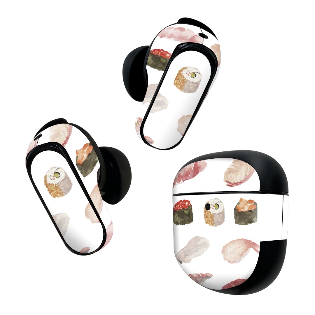Bose QuietComfort Earbuds II 用 スキンシール ボーズ イヤバッズ2 用 ステッカー 本体3セット ケース1セット 保護 フィルム デコ お寿司 食べ物 和食 016180