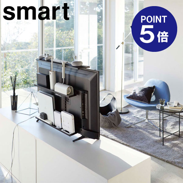 【ポイント5倍】【山崎実業】【Smart】テレビ上&裏ラック スマート ワイド ブラック 4883