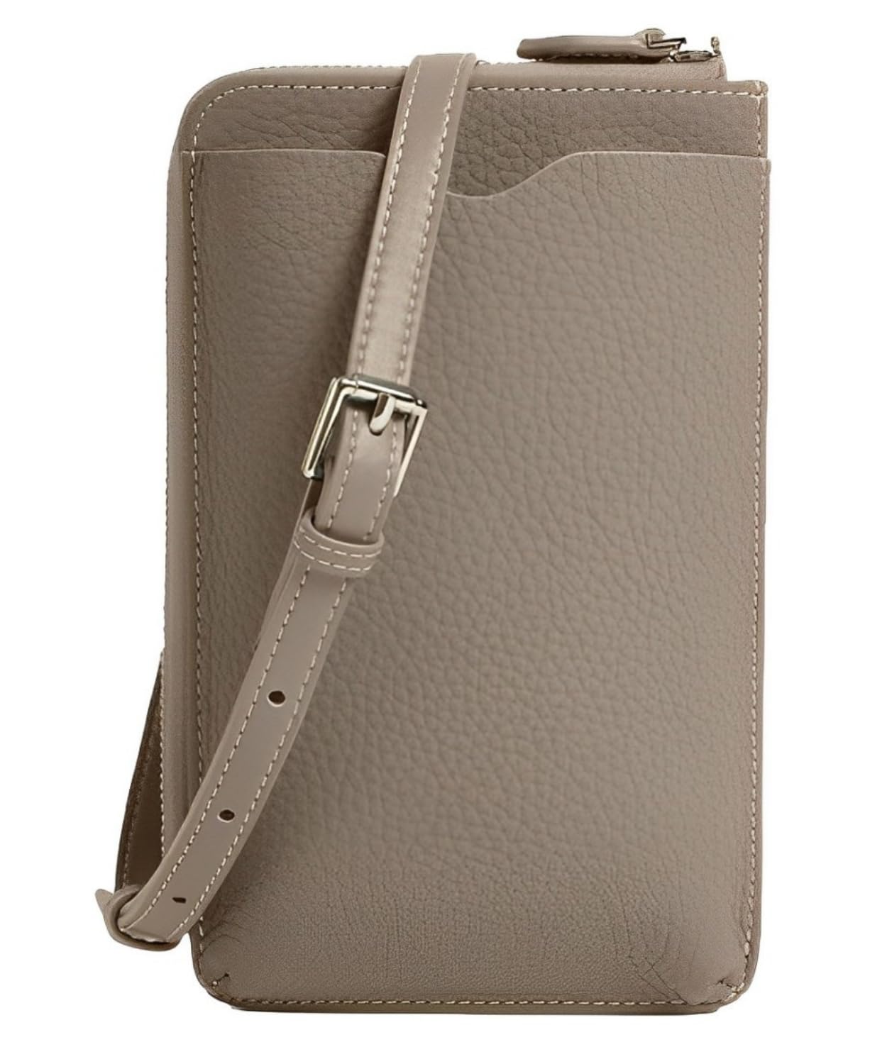 【送料無料】[Four leaf] 【本革の質感 コンパクトで薄型】 おしゃれ 本革 スマホショルダー お財布 携帯 ショルダーバッグ レディース 斜め掛け 軽量 財布と一体型 上品 お洒落 スマホケース バック 女性 色:グレージュ、サイズ:18x12x4cm