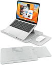 【安定感抜群の滑り止め設計】天面と底面に施されたダブルラバーにより、ノートパソコンをしっかりと固定。膝の上やソファ、ベッドの上でも滑り落ちる心配がなく、安定したタイピングやマウス操作が可能です。15.7インチまでの幅広いノートパソコンに対応します。 【熱対策に優れた独自素材】特殊な素材を使用することで、ノートパソコンの熱を効率的に逃がし、長時間の作業でも快適な使用感を維持します。ご自宅、オフィス、外出先など、場所を選ばず安心してご利用いただけます。 【持ち運びと収納がラクラク】厚さわずか1.5cm、重さ約967gの薄型・軽量設計。15インチのコンパクトサイズで、バッグやリュックにスマートに収納でき、外出先への持ち運びも簡単です。 【左右両対応の格納式マウスパッド】左右どちらにも引き出し可能なマウスパッドを搭載。右利き、左利き問わず快適にマウス操作が行えます。マウスパッドの縁が高くなっているため、マウスが誤って落下するのを防ぎます。