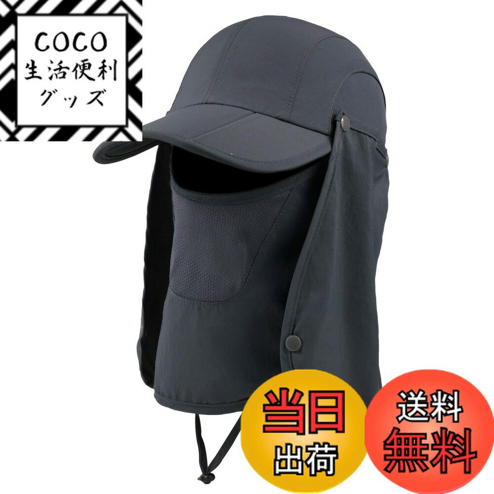 iBasingo アウトドア UVカット 帽子 3Way 360度UVカット 日除け 折りたたみ可能 紫外線対策 花粉対策 取り外し可能 フェイスカバー スポーツ 登山 農作業 ガーデニング キャップ ランニング 釣り メンズレディース兼用 ダークグレー BVH19