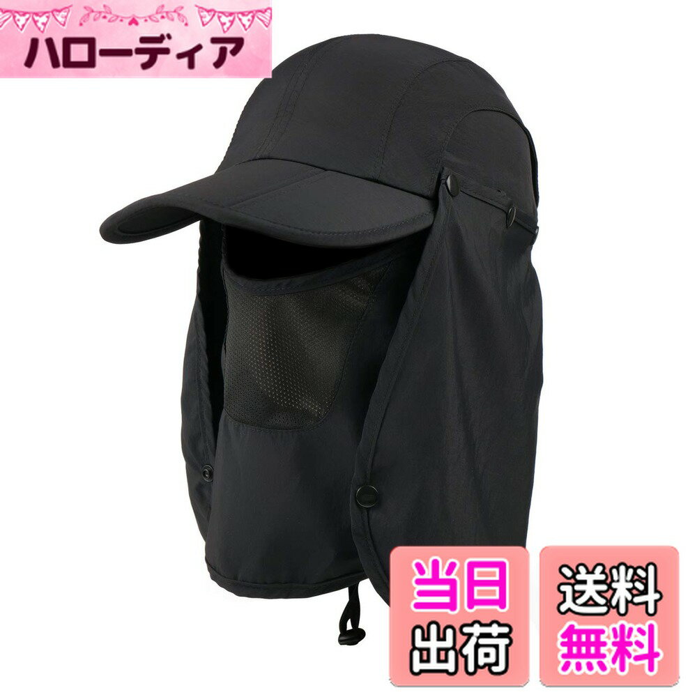 【送料無料】iBasingo アウトドア UVカット 帽子 3Way 360度UVカット 日除け 折りたたみ可能 紫外線対策 花粉対策 取り外し可能 フェイスカバー スポーツ 登山 農作業 ガーデニング キャップ ラン 色:ブラック、サイズ:(約)24cm(ベルト)x10cm(深さ)x9.5cm(ブリム幅さ)