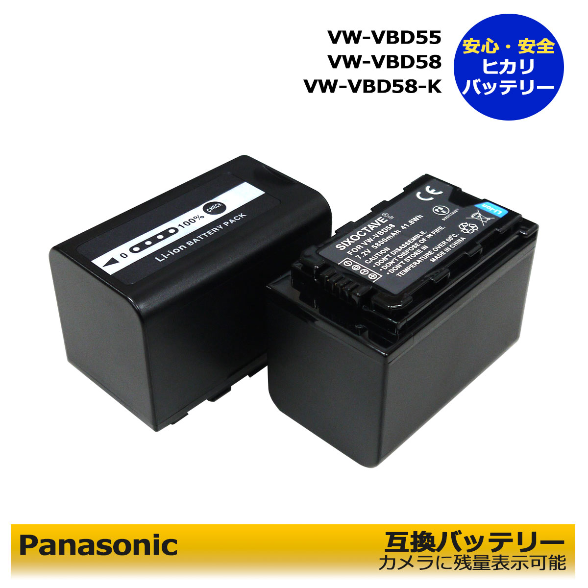 VW-VBD58-K VW-VBD58 互換バッテリー 2個 [ 純正充電器で充電可能 残量表示可能 純正品と同じよう使用可能 ] PANNASONIC パナソニック AG-CX350 AG-DVX200T8 AG-UX180T8 AG-UX90T8 AG-AC30 AU-EVA1T8 AJ-PX270T8