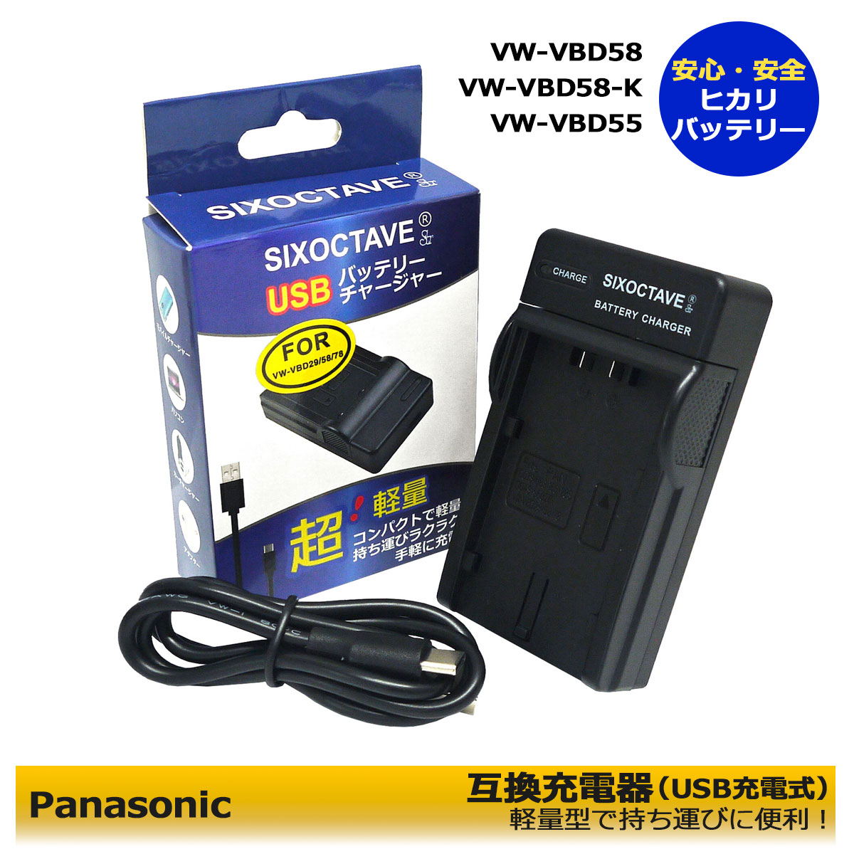 VW-VBD58 / VW-VBD58-K / VW-VBD55【送料無料】 Panasonic 互換USB充電器 1点 AJ-PJ50 / AU-EVA1T8 / AJ-PX270 / AJ-PX270T8 / AG-AC30 / AG-CX350 / AG-UX90 / AG-UX180 / AG-UX90T8 / AG-UX180T8 / HC-X1000 / HC-X1000-K