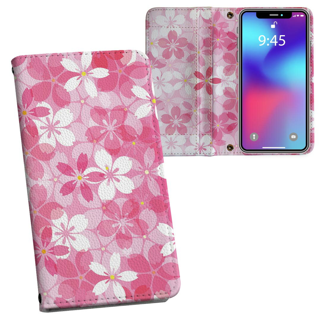 iPhone11 6.1インチ 専用 iphone 11 アイフォン softbank docomo au 両面プリント 裏表 内側 内面 スマホ カバー レザー ケース 手帳タイプ フリップ ダイアリー 二つ折り 革 フルデザイン 000165 フラワー 桜柄 さくら ピンク