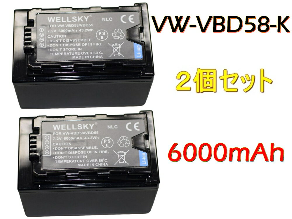 パナソニック ★送料無料★ VW-VBD58 / VW-VBD58-K 互換バッテリー 2個セット AG-UX90T8 / AG-UX180T8 / HC-X1000 / HC-X1000-K / HC-X1500 / HC-X1500-K / HC-X2000 / HC-X2000-K / HDC-Z10000 / AJ-PJ50 / AU-EVA1T8 / AJ-PX270 / AJ-PX270T8