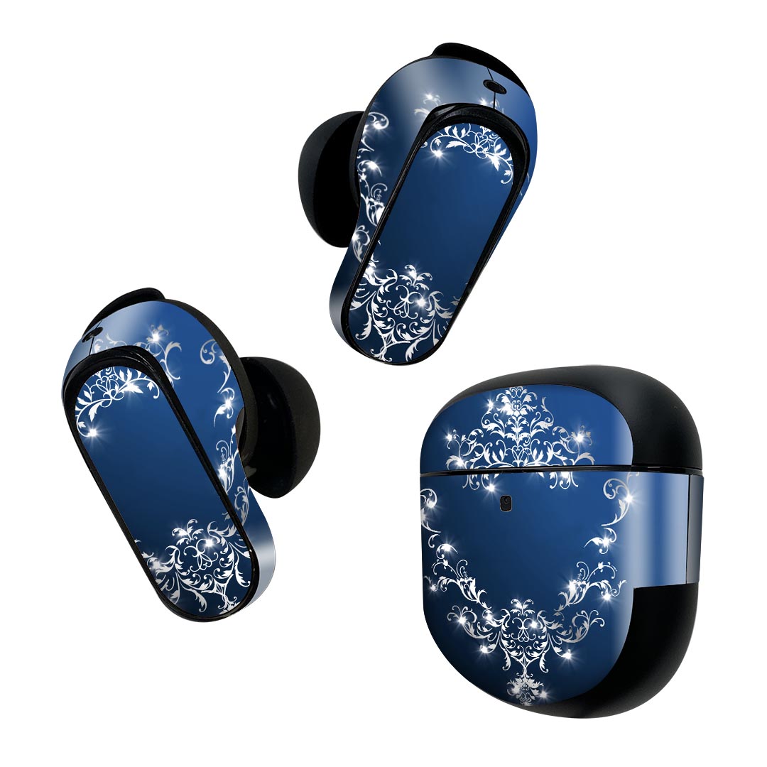 Bose QuietComfort Earbuds II 用 スキンシール ボーズ イヤバッズ2 用 ステッカー 本体3セット ケース1セット 保護 フィルム デコ 青 キラキラ イラスト 004915