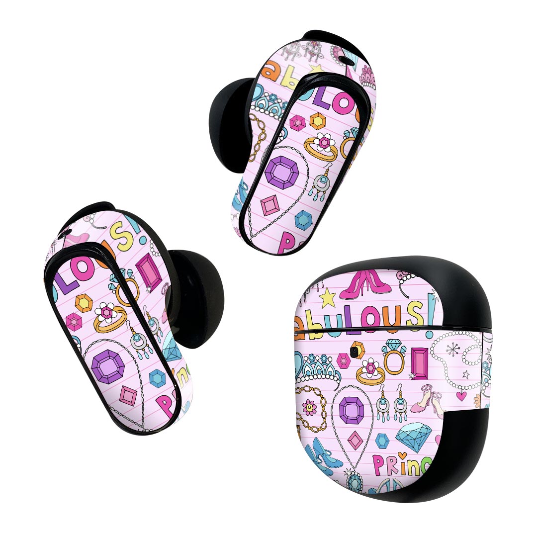Bose QuietComfort Earbuds II 用 スキンシール ボーズ イヤバッズ2 用 ステッカー 本体3セット ケース1セット 保護 フィルム デコ クラウン 王冠 ダイヤ 000426