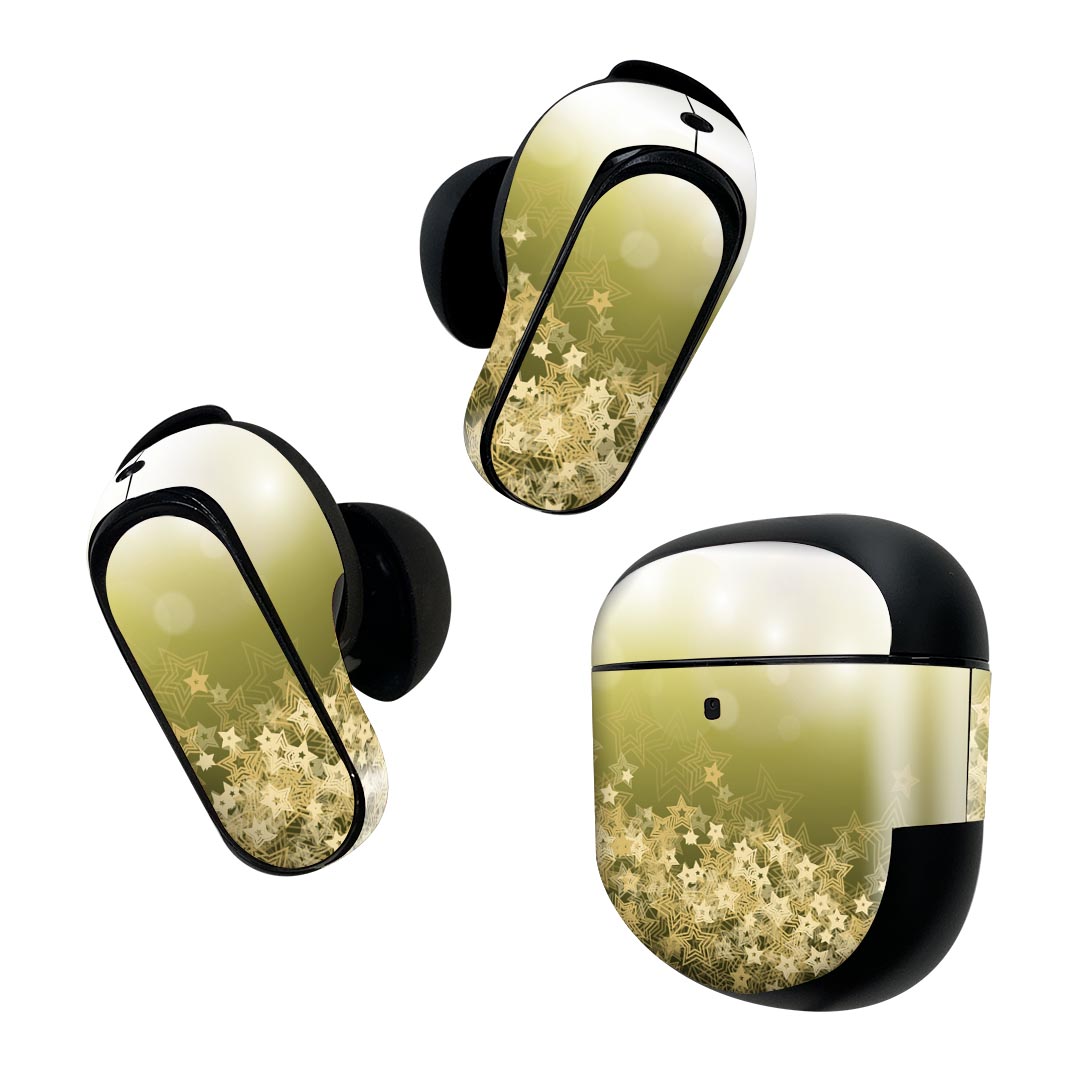Bose QuietComfort Earbuds II 用 スキンシール ボーズ イヤバッズ2 用 ステッカー 本体3セット ケース1セット 保護 フィルム デコ 星 ゴールド 緑 002181